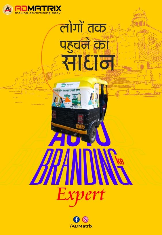 1.Advertisements on autorickshaws: Autorickshaws provide ample space on their exteriors for advertising. Advertisements can be displayed on the body of the autorickshaw, including the hood, doors, sides, back, and roof. These ads can be in the form of vinyl stickers, decals, or even painted designs.
